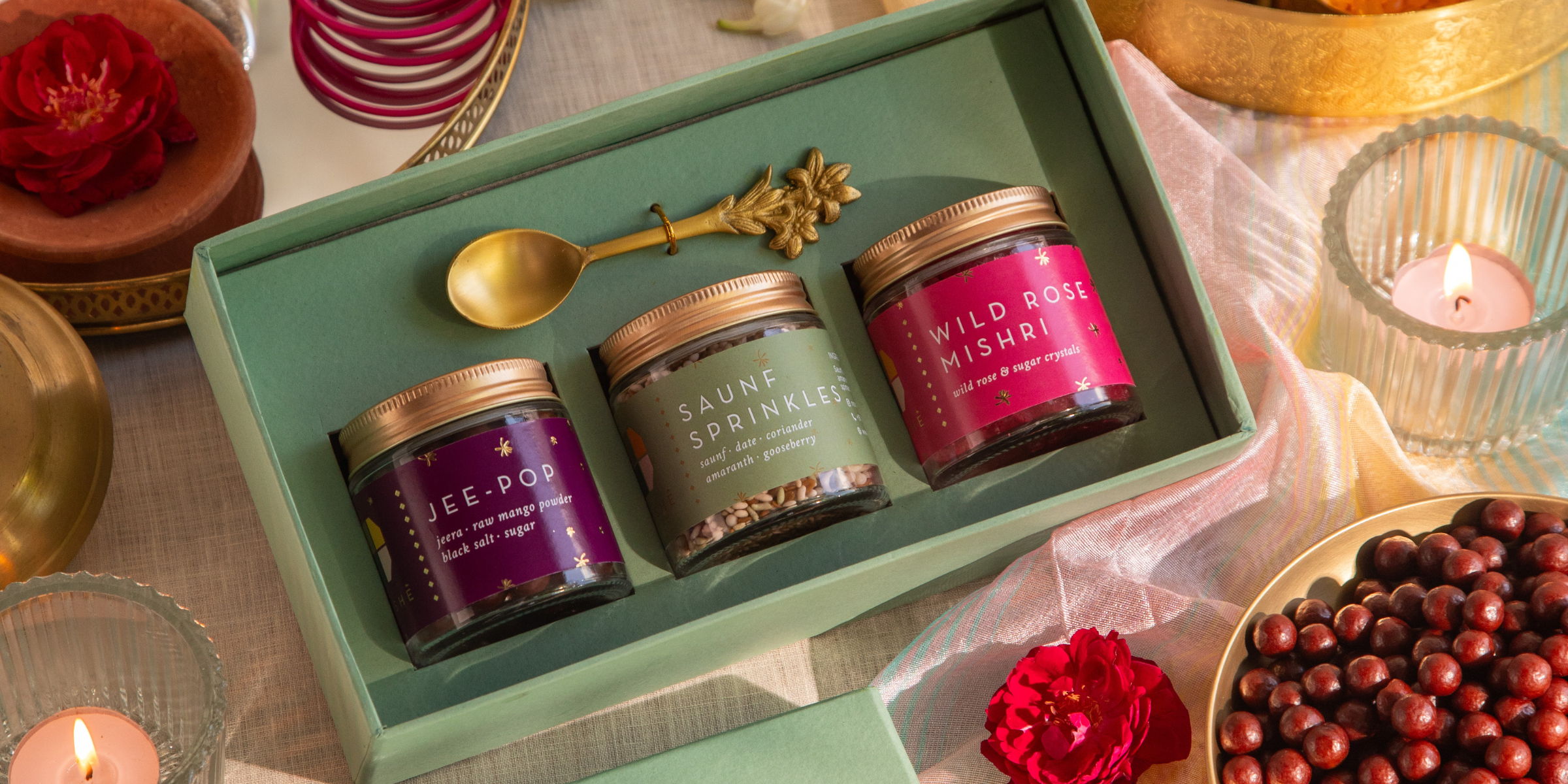 Elaichi Gift Box 🎉 (Set of 3 Jars & a Brass Spoon)